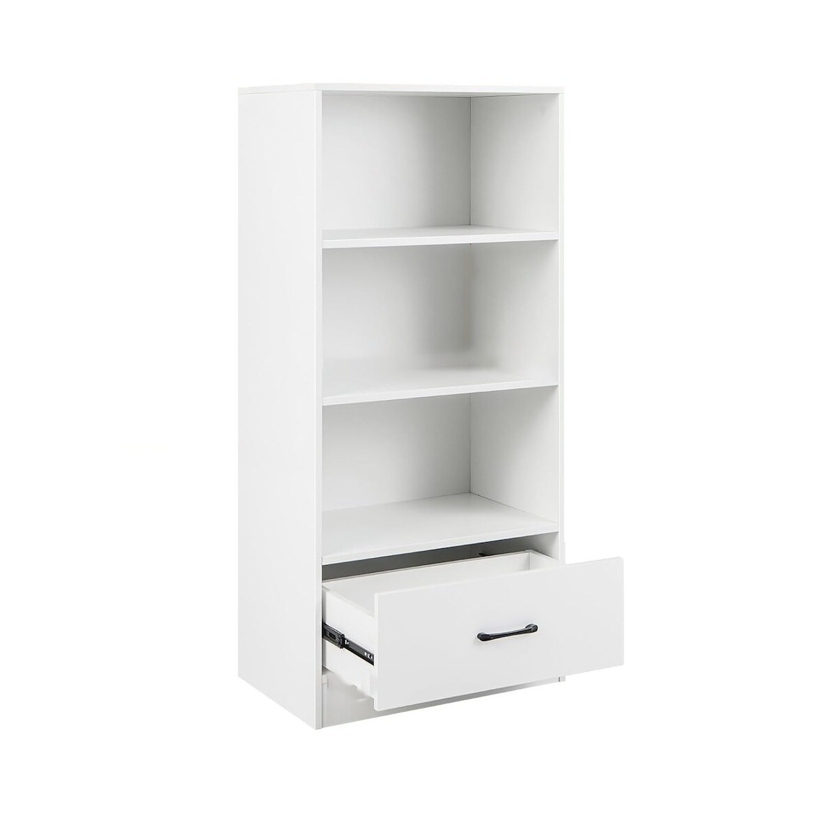 COSTWAY 120 cm Bücherregal mit Schubladen, 4 Ebenen Holz Aufbewahrungsregal, Stehendes Regal (Weiß)