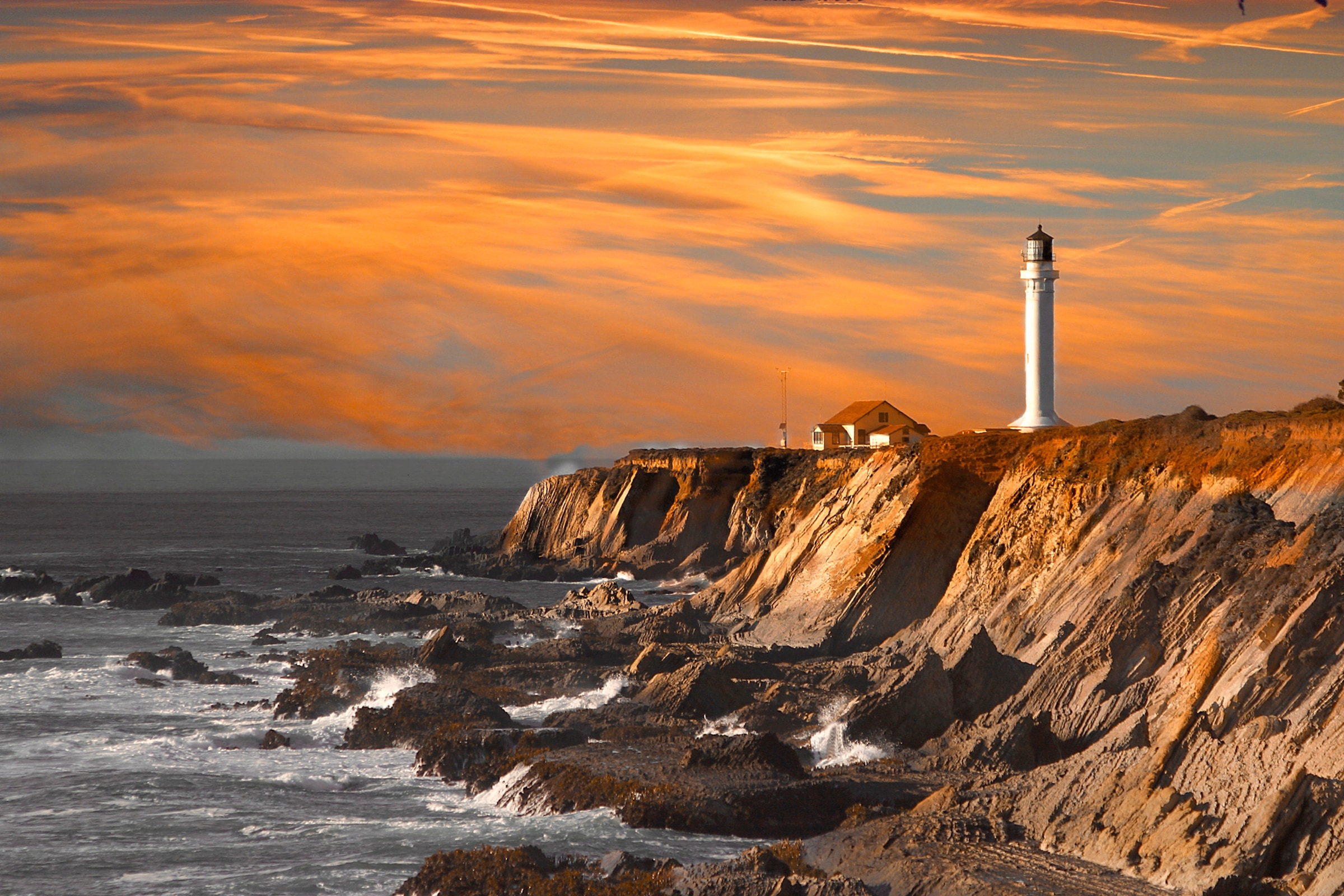 Fototapete PAPERMOON "LEUCHTTURM-KLIPPEN KÜSTE SEE MEER OZEAN WELLEN STRAND", bunt, B:5,00m L:2,80m, Vlies, Tapeten