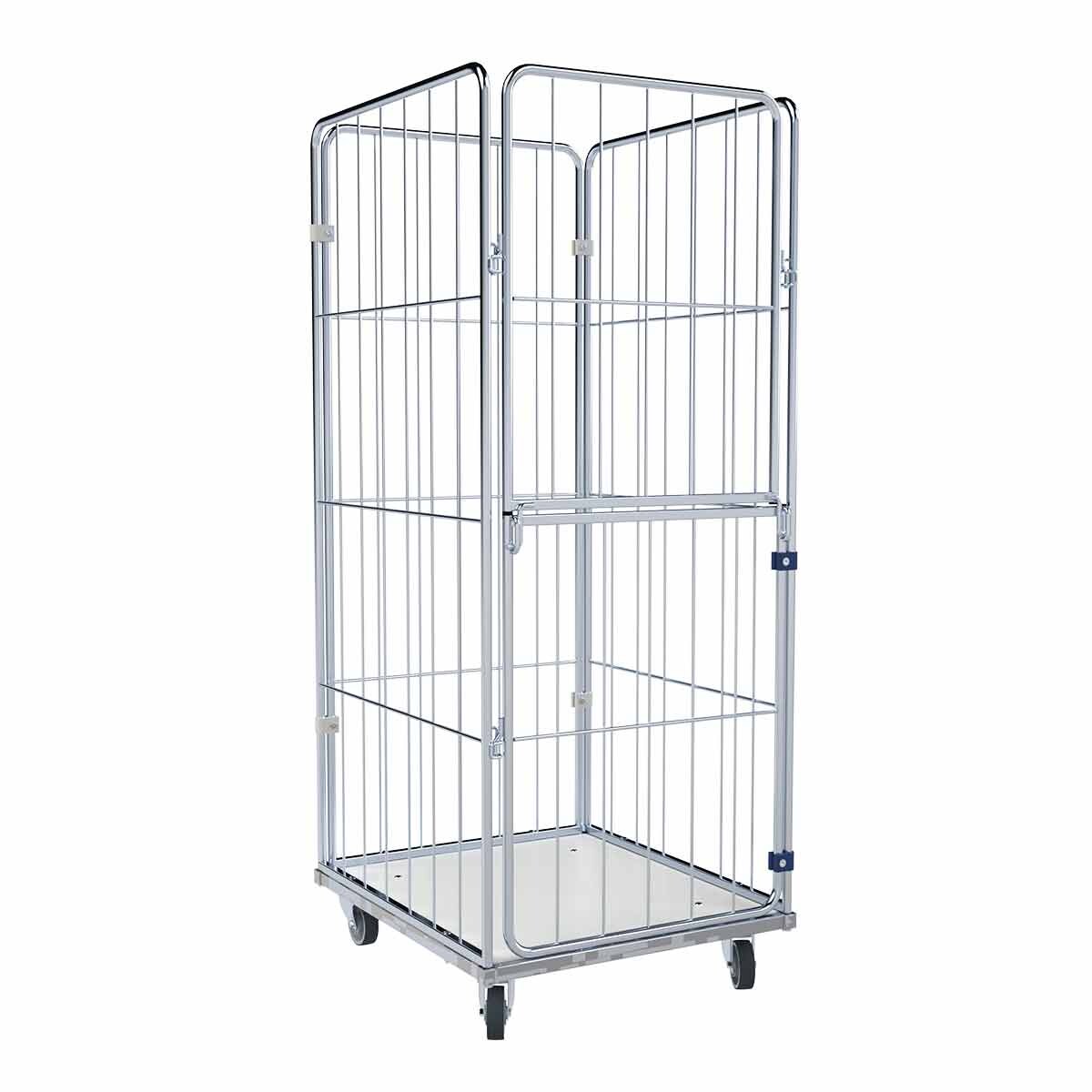 Oswald Transportgeräte Wäschewagen Nutzhöhe 1.200 mm, Stahlboden, 4-seitig, Vorderwand klappbar/schwenkbar, 600 x 740 x 1.350 mm, 400 kg