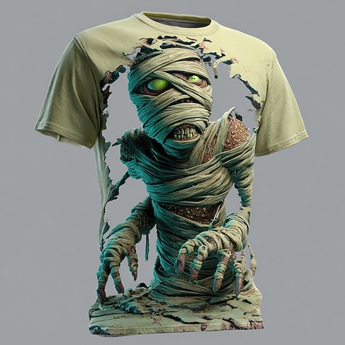 Per uomo Illusione ottica 3D Mummia Maglietta Manica Corta maglietta Stampa 3D Girocollo Camicia Esagerato Designer Orrore Feste Streetwear Ferie Blu Rosa Viola Estate Primavera Tutte le stagioni