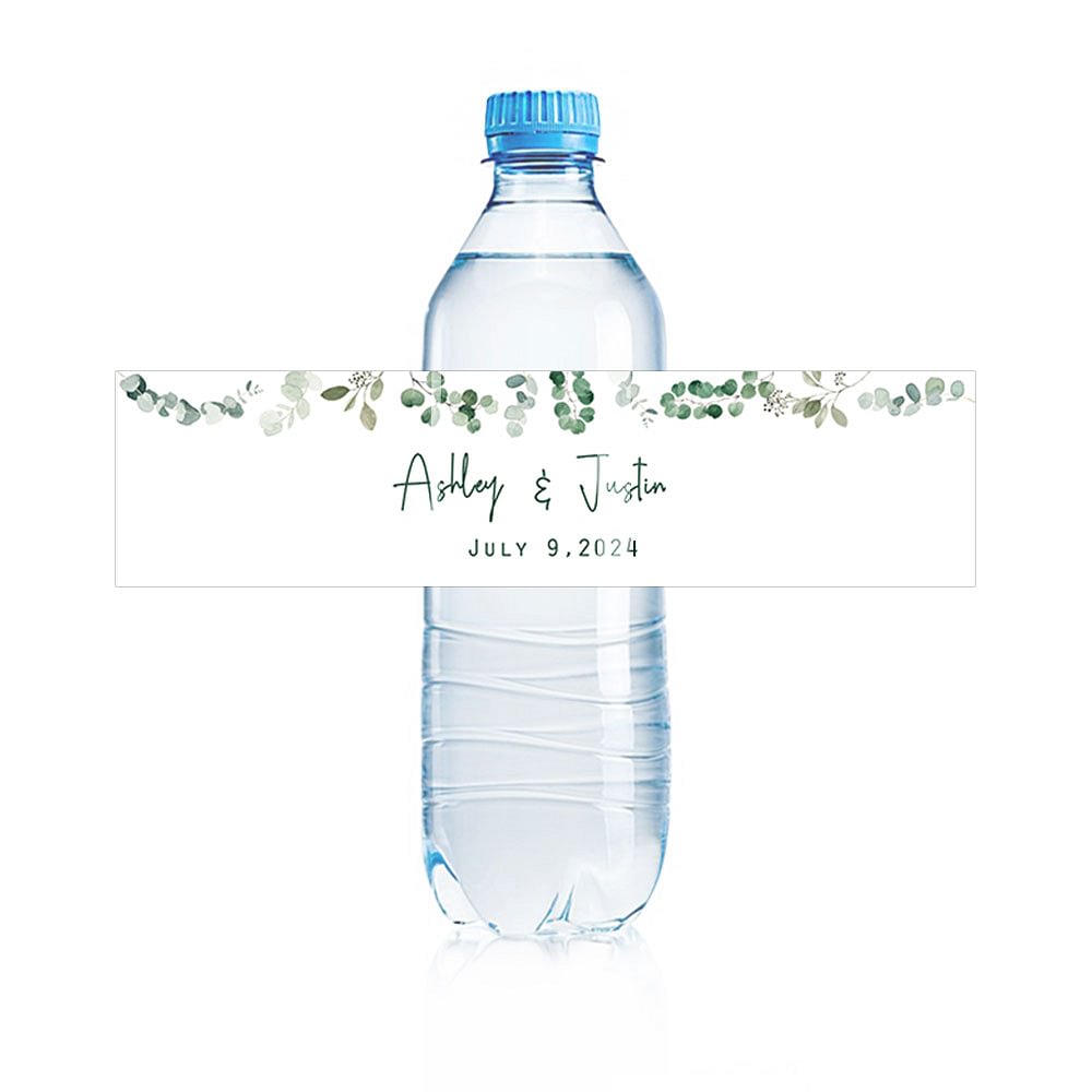 Personlig Eucalyptus Tema Bröllop Vattenflaska Etiketter Uppsättning av 30 Förlovning Bridal Shower Party Present