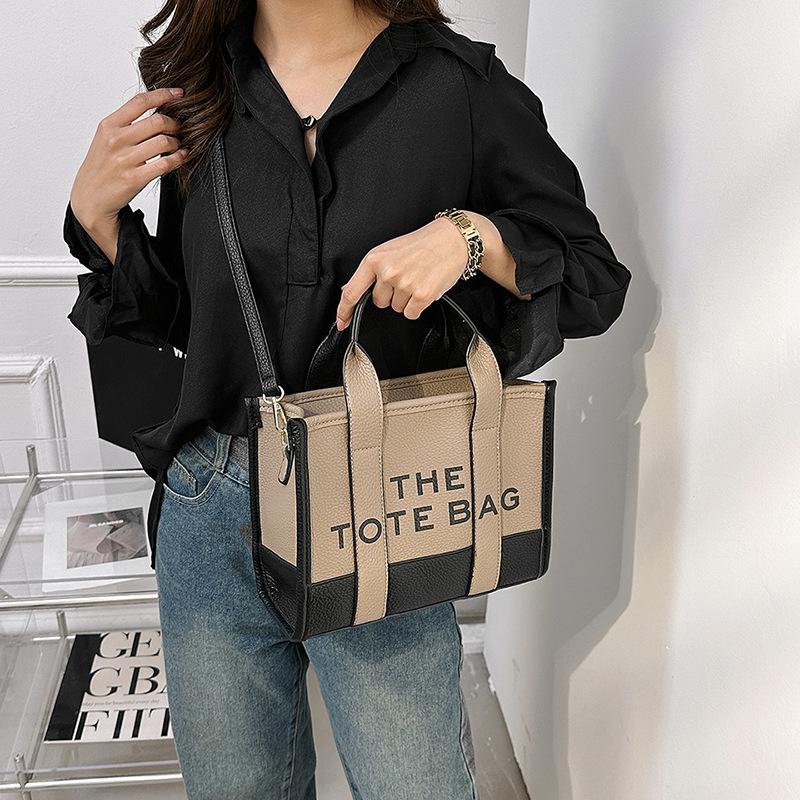 Trendy Tweekleurige PU Leer Dames Crossbody en Schouder Tote Tas blauw