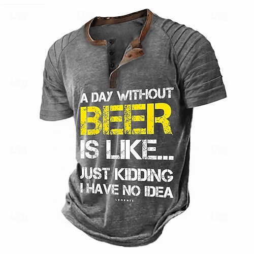 Per uomo Gergo divertente Maglia Henley T-shirt Raglan Manica Corta Moda Designer Casual All'aperto Vacanza Casuale Estate Primavera Blu Grigio Verde Colletto Henley Henley Maglietta Henley