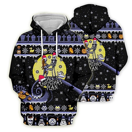 Nightmare Jack Skellington Felpa con cappuccio natalizia divertente 3D Natale Tasca frontale Grafica Per Da coppia Per uomo Per donna Per adulto Natale Carnevale Stampa 3D Feste Festival