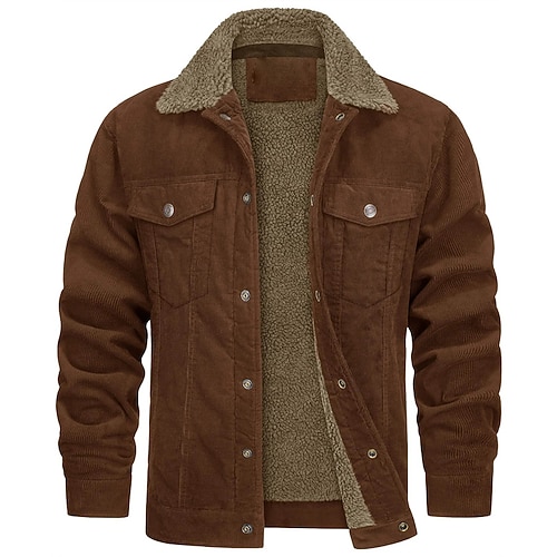 Per uomo Giacca Invernale Giacca in Velluto a Coste Giacca in Pile Giacca Casual Uscire Fibbia Autunno Inverno Casual Bavero Regolare Nero Blu marino Marrone Verde Giacca