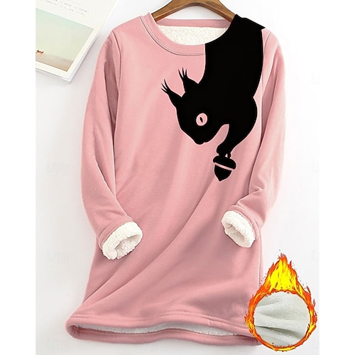 Per donna Felpa Pullover Animale Moda Essenziale Casual Manica Lunga Girocollo Top Regolari Streetwear Abbigliamento Quotidiano Casuale Stampato Foderato in pile Nero Giallo Rosa Rosa scuro Blu