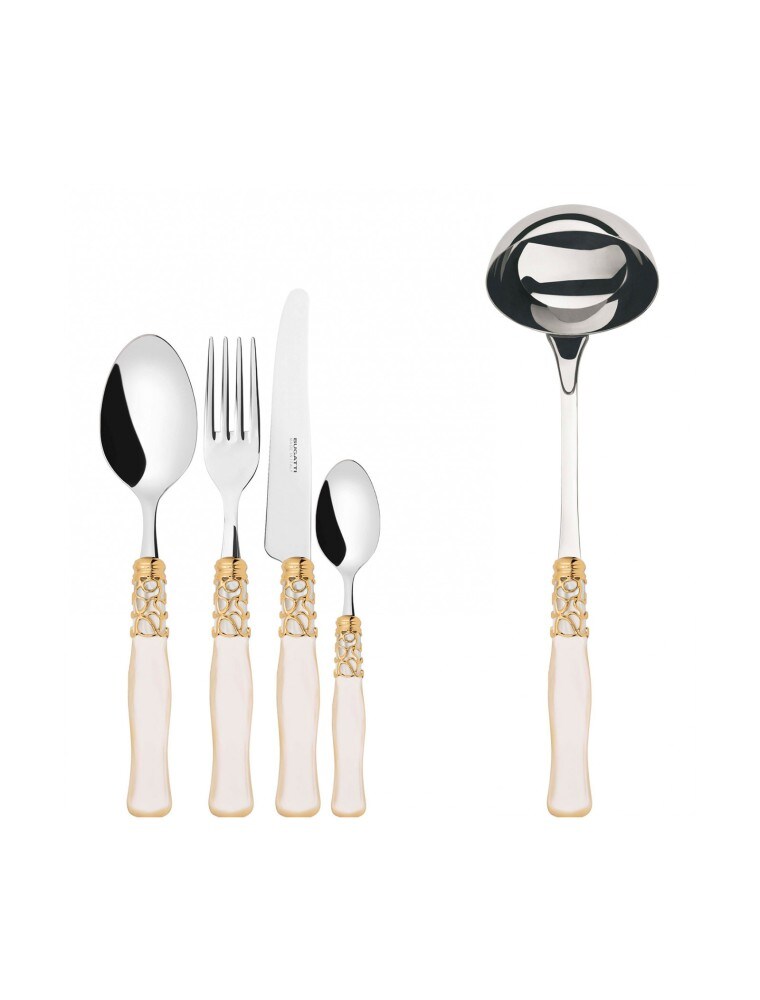 selene, besteckset 49-teilig goldringsy beige griff, galeriebox, casa bugatti