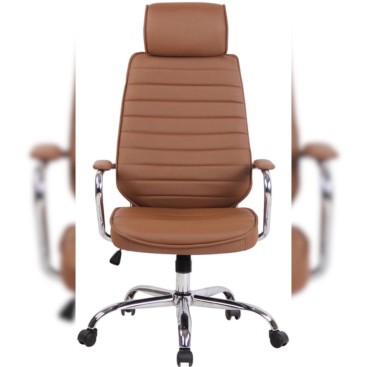 DELUKE® Bürostuhl Ergonomisch FUGOR Schreibtischstuhl mit Rollen Höhenverstellbarer Drehstuhl, Arbeitsstuhl mit Kopfstütze Chefsessel 125 kg Hellbraun