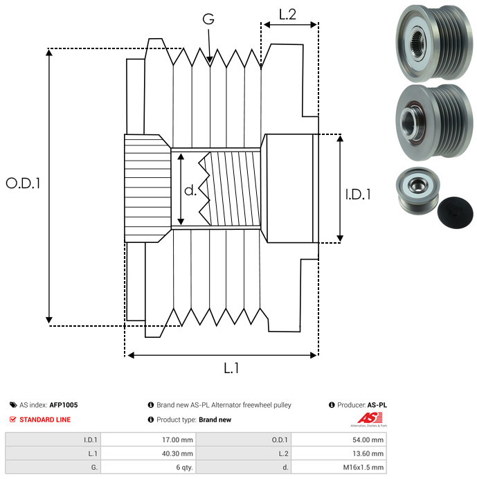 AS-PL Generatorfreilauf AFP1005 für OPEL CHEVROLET 55567951 1204292 1204178