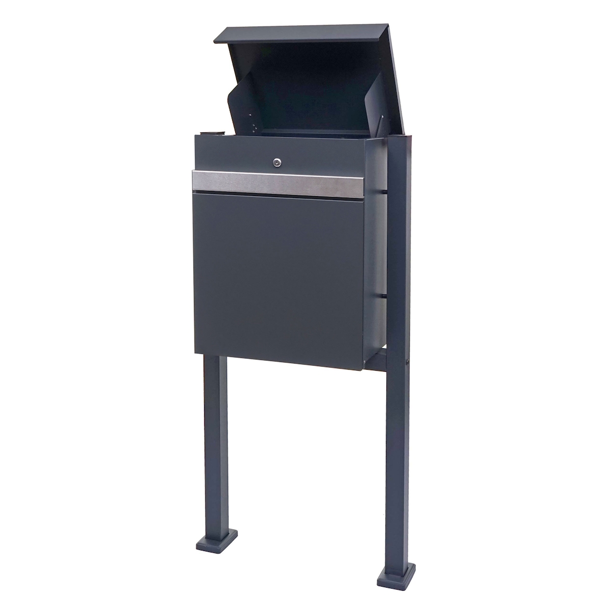 Mendler Paketkasten mit Standfuß HWC-K41, Paketbox Paketstation Standbriefkasten, Metall ~ verzinkt anthrazit-Edelstahl