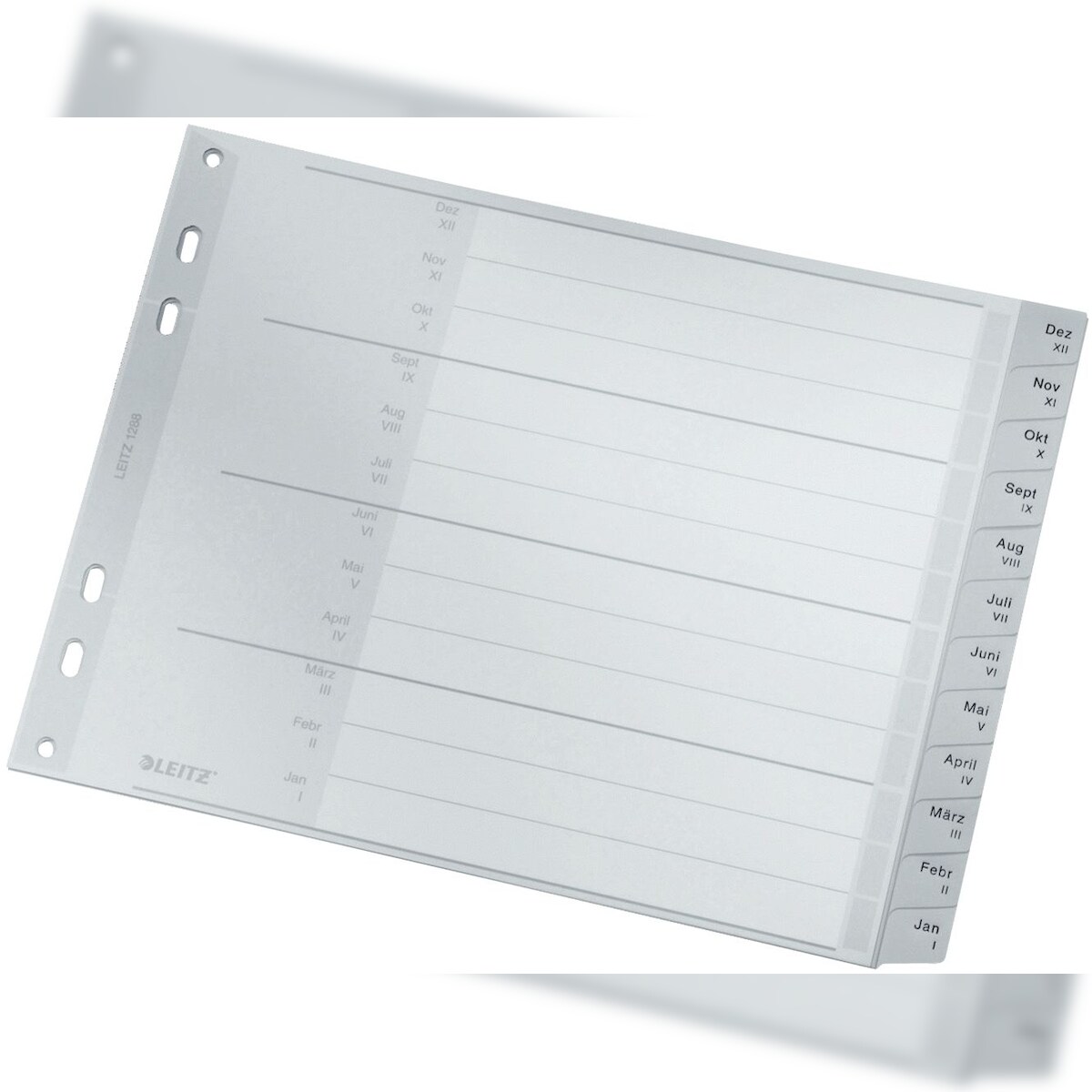 Leitz 1288-00-85 1288 Monatsregister - Dez-Jan, A4, PP, 12 Blatt, grau