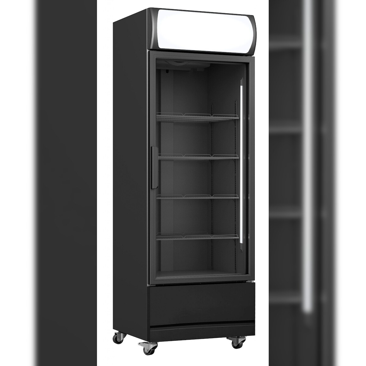 CombiSteel Mobiler Kühlschrank mit 1 Glastür Getränkekühlschrank 380 L +1/10°C mit Display Schwarz