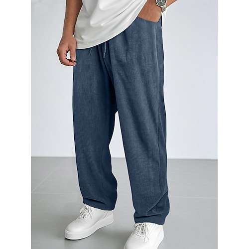 Per uomo Pantaloni Pantaloni in velluto a coste Pantaloni Larghi Pantaloni casual Pantaloni della tuta a gamba dritta Coulisse Gamba larga Tinta unica Comodità Lunghezza intera Casuale Quotidiano