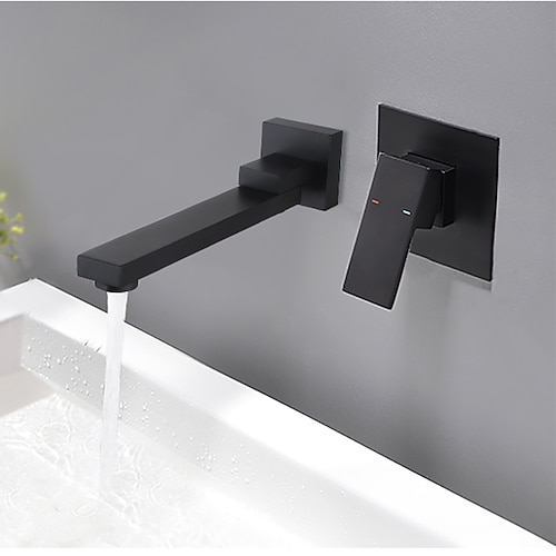 Lavandino rubinetto del bagno - Singolo Nero Montaggio su parete Una manopola Due foriBath Taps / Ottone