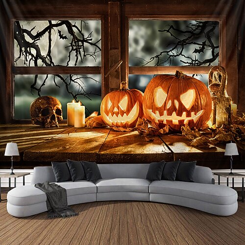 Halloween arazzo Striscioni Arazzi da Parete Zucca 3D Gotico punk oscuro Da serata Dormitorio Sfondi di ripresa Decorazioni Parete Porta Sfondo