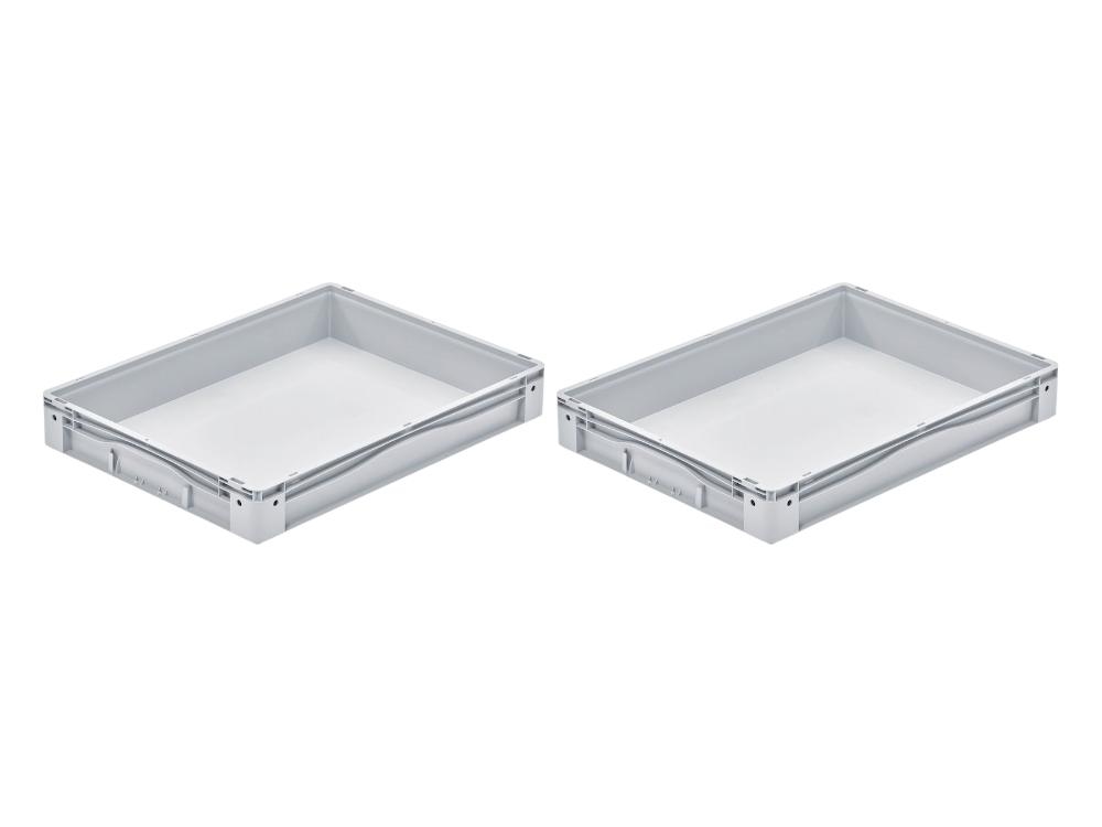PROREGAL 2x Euro-Norm Großbehälter | HxBxT 12x60x80cm | 49 Liter | Glatter Boden | Grau | Eurobehälter, Transportbox, Transportbehälter