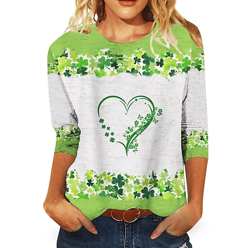 Giorno di San Patrizio Festa di San Patrizio Per donna Maglietta Cuore Foglia Giorno di San Patrizio Manica Lunga Girocollo Top Regolari Ferie Weekend Stampato Verde primavera Bianco Avorio Verde