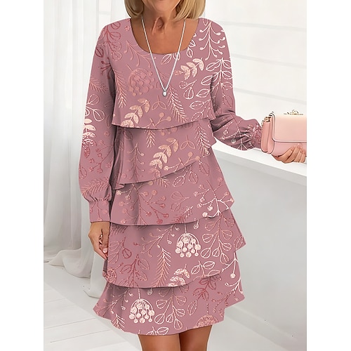 Per donna Abito Midi Abito a trapezio Casual Quotidiano Vestibilità regolare Grafico Foglia Manica Lunga Girocollo Rosa Blu Verde Autunno Inverno