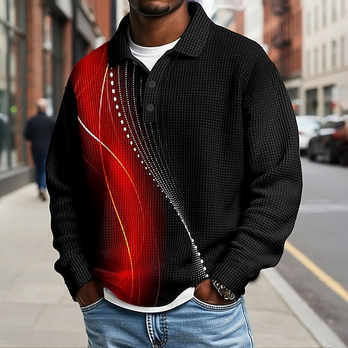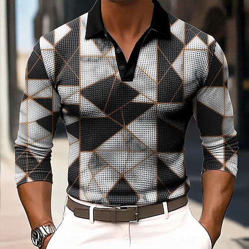 Per uomo Astratto Geometrico Magliette Polo a Nido d'Ape Manica Lunga Magliette polo Camicie con Colletto Business Casual Affari Abbigliamento da lavoro Abbigliamento quotidiano Bottoni Primavera