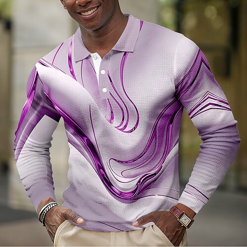 Per uomo Geometrico Marmo Magliette Polo a Nido d'Ape Manica Lunga Magliette polo Camicie con Colletto Casual Abbigliamento quotidiano Bottoni Primavera Autunno Inverno Blu Viola Verde