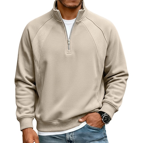 Per uomo Polo Polo con zip a un quarto Abbigliamento quotidiano Data Zip a un quarto Manica Lunga Moda Essenziale Semplice Cerniera Primavera Autunno Vestibilità regolare Blu Aalbicocca Nero Bianco