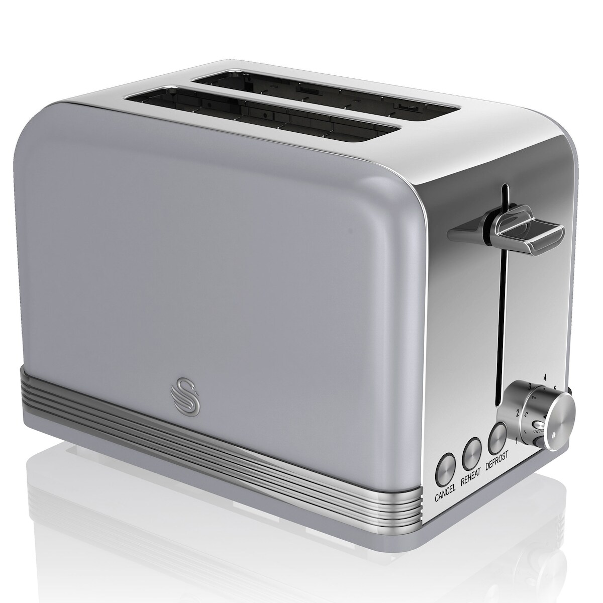 SWAN ST19010GRNEU Retro Toaster Breite Schlitze 2 Scheiben 3 Funktionen 6 Stufen Toasting, Vintage, Grau, 800W