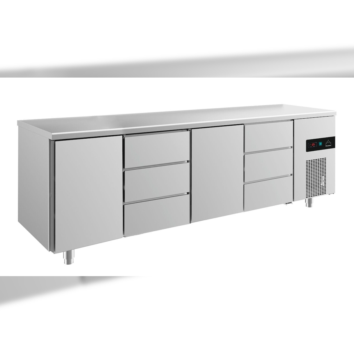 Gastro Kühltisch 2 Türen (links & Mitte) 6 Schubladen Umluftkühlung 2330x700x850mm -2/+8°C