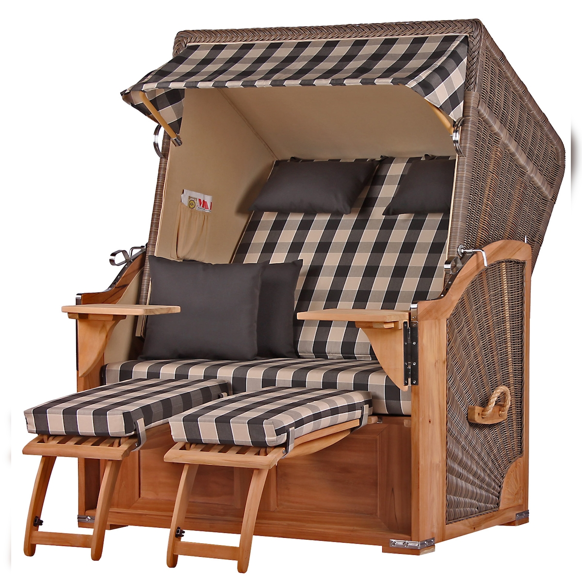 Mr. Deko Strandkorb Komplettset - bene living - Schaalsee Teak - PE grau - Modell 505 - inkl. Liftersystem