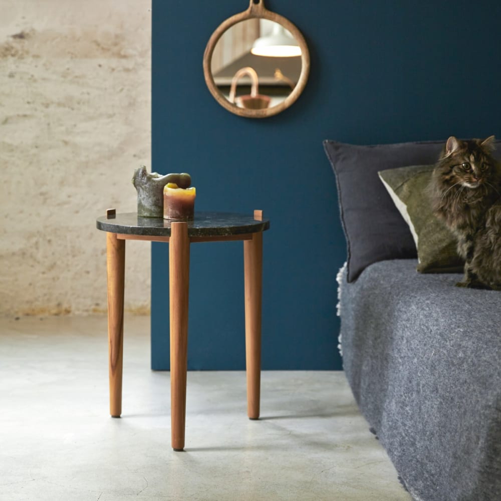 Sgabello rotondo in legno di teak riciclato, altezza 45,5 cm.