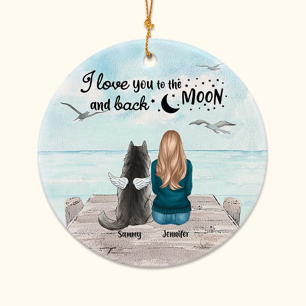 Adorno de cerámica redondo personalizado I Love You to the Moon and Back con fondo de gaviota Regalo de Navidad y Cumpleaños para un amante de los per