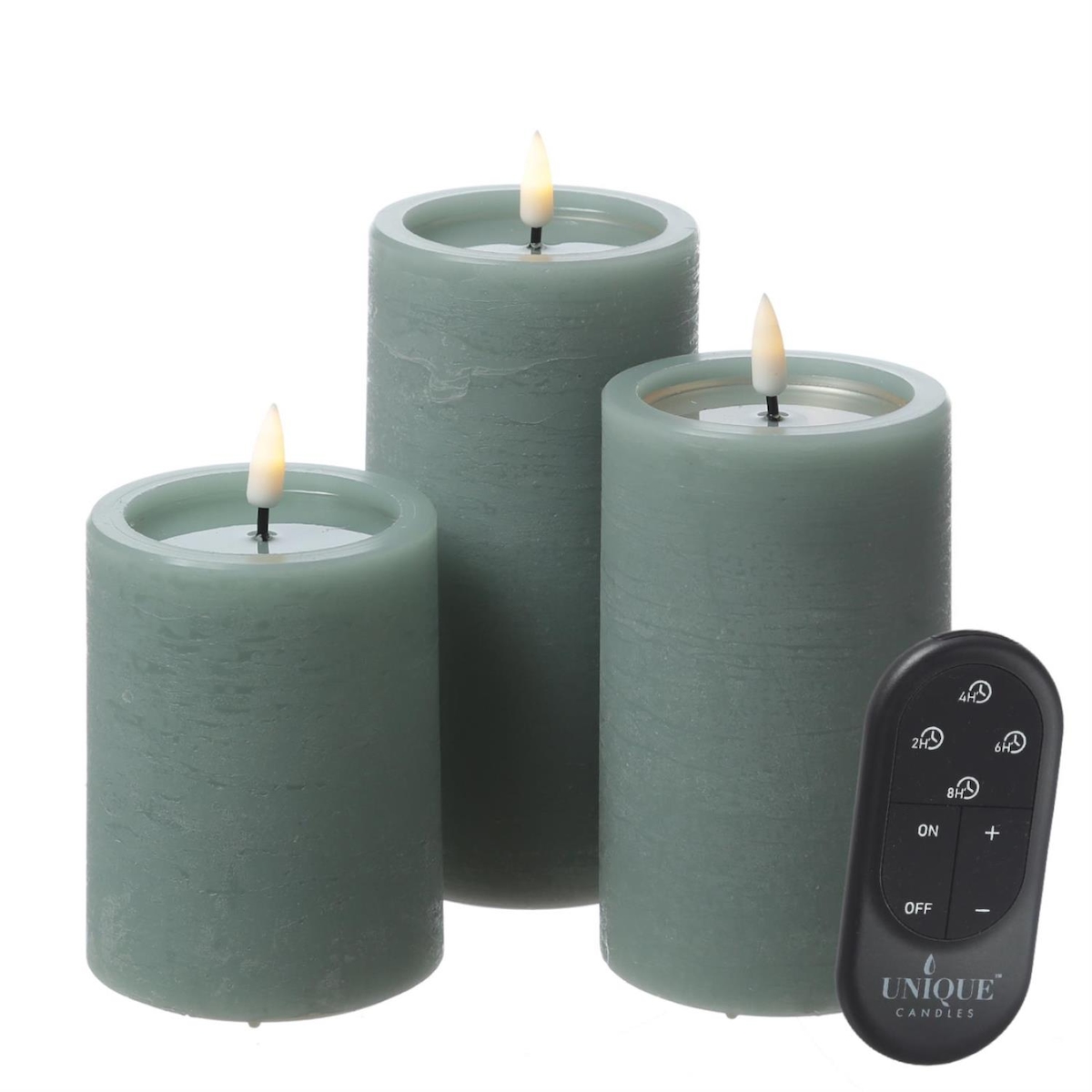 LED Kerzenset UNIQUE Rustik-Optik 3 Größen mit Batterien und Fernb. 3er Set