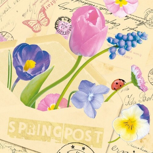 Mank Serviette Airlaid Springpost, 40 x 40 cm, 50 Stück - Blumen Schmetterlinge
