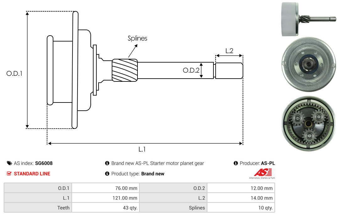 AS-PL Hohlrad, Planetengetriebe (Starter) Universal 76,00mm für TOYOTA 280213-8020 280213-8070 280213-8040 SG6008