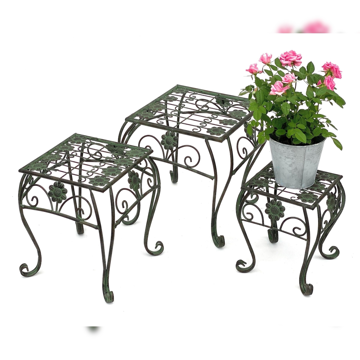 DanDiBo Blumenhocker Metall Grün Eckig 3er Set Blumenständer 96007 Blumensäule Modern Pflanzenständer Pflanzenhocker Vintage