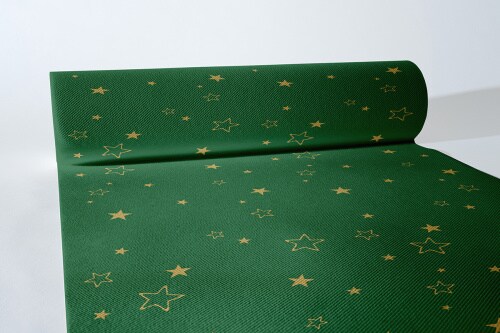 Sovie HORECA Weihnachtstischläufer Liam in Grün aus Linclass® Airlaid 40 cm x 24 m, 1 Stück - Sterne