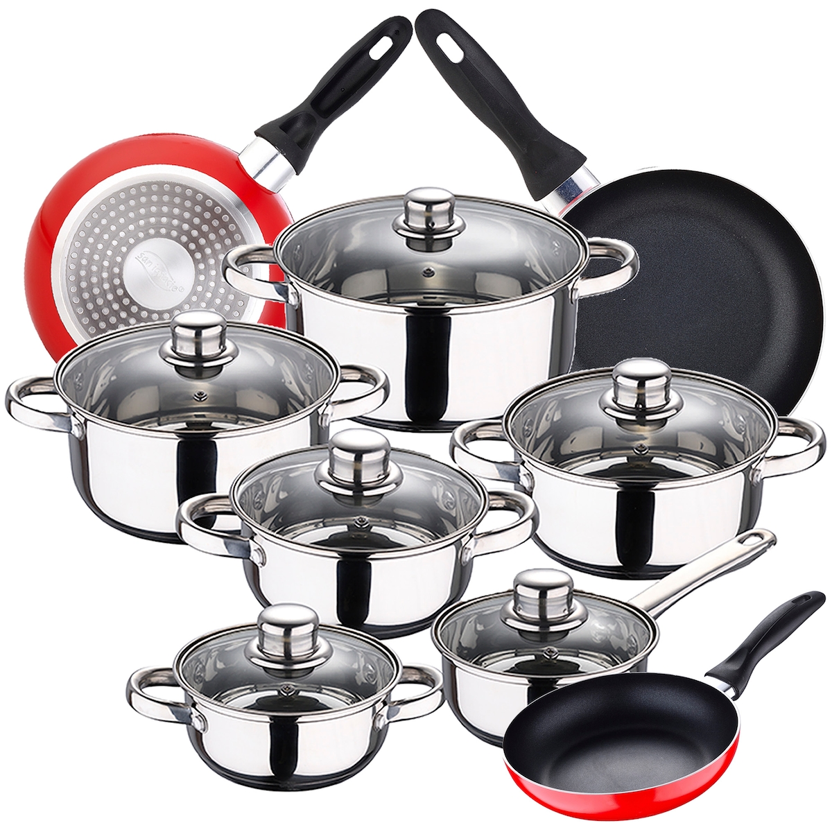 San Ignacio - Cassel-Kochgeschirrset: 6 Töpfe mit Deckel und 3 Pfannen Ø16/20/24 cm aus Edelstahl/gepresstem Aluminium