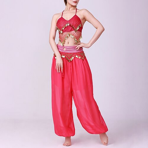 Danza Latina Top Monetine dorate Colore puro Giunzione Per donna Performance Allenamento Senza Maniche Alto Poliestere
