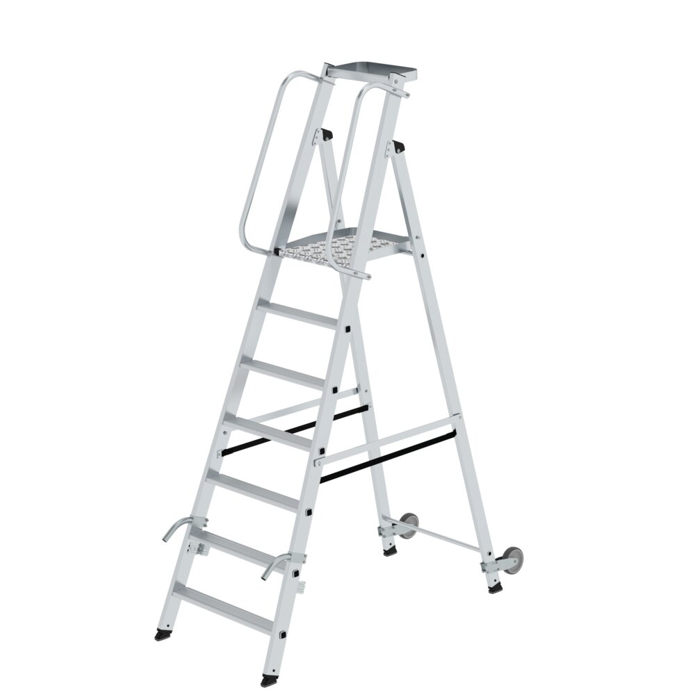 Munk Günzburger Steigtechnik MUNK Podestleiter mit Rollen und Griff Aluminium geriffelt 8 Stufen