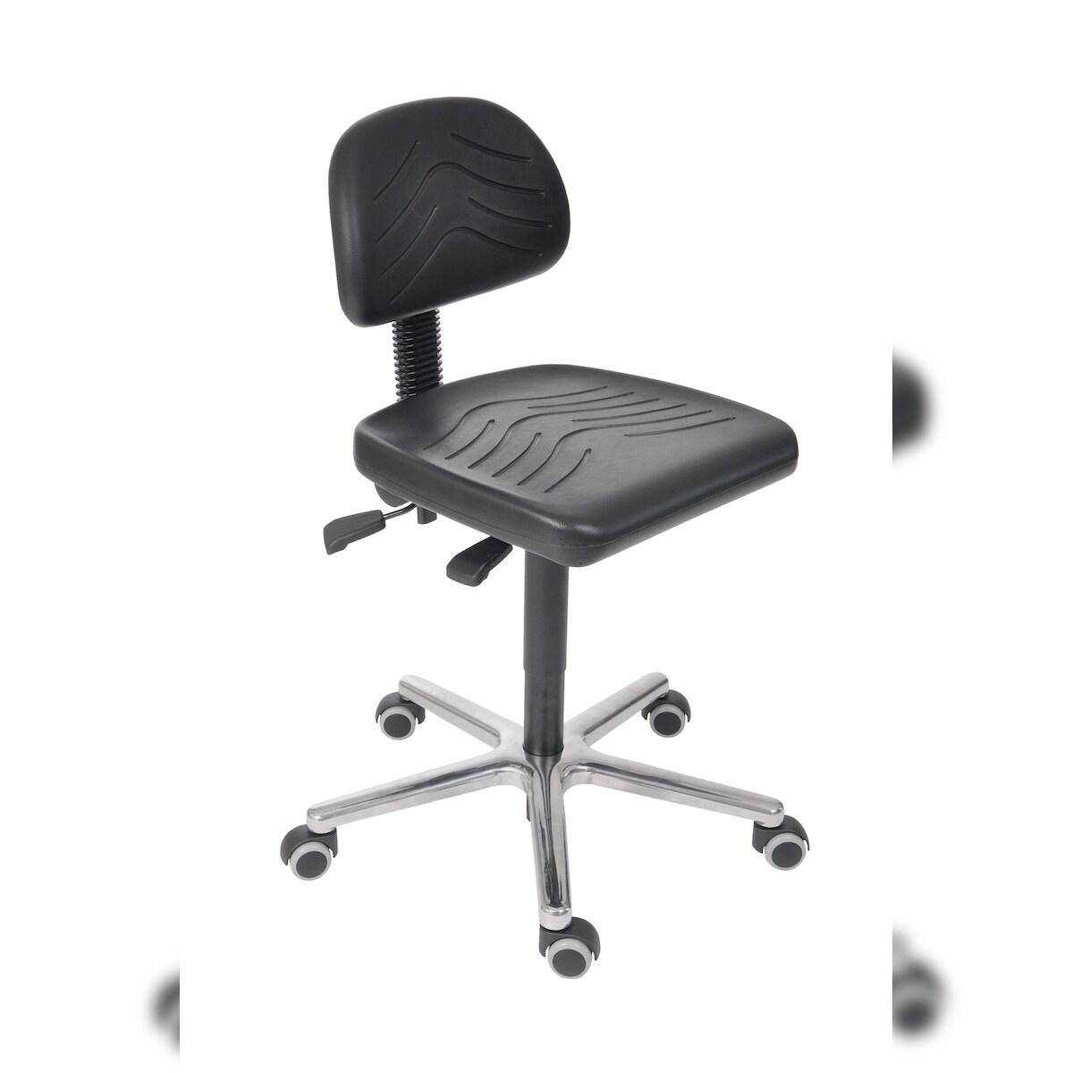 PROREGAL Arbeitsstuhl Arlington, kleiner Rückenlehne, Sitzneigeverstellung, Sitzhöhe 49-67cm, Polyurethane-Sitz, Aluminium-Fußkreuz, Rollen