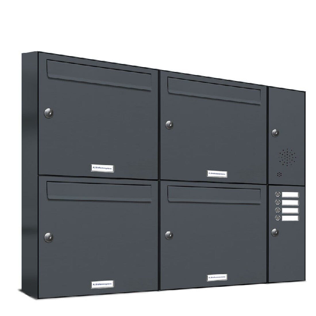 AL Briefkastensysteme 4 Fächer Premium Wand Briefkasten Anlage A4, in RAL 7016 Anthrazit Grau, robust, wetterfest, Artikelnummer: 331P4EA2KSRP7016