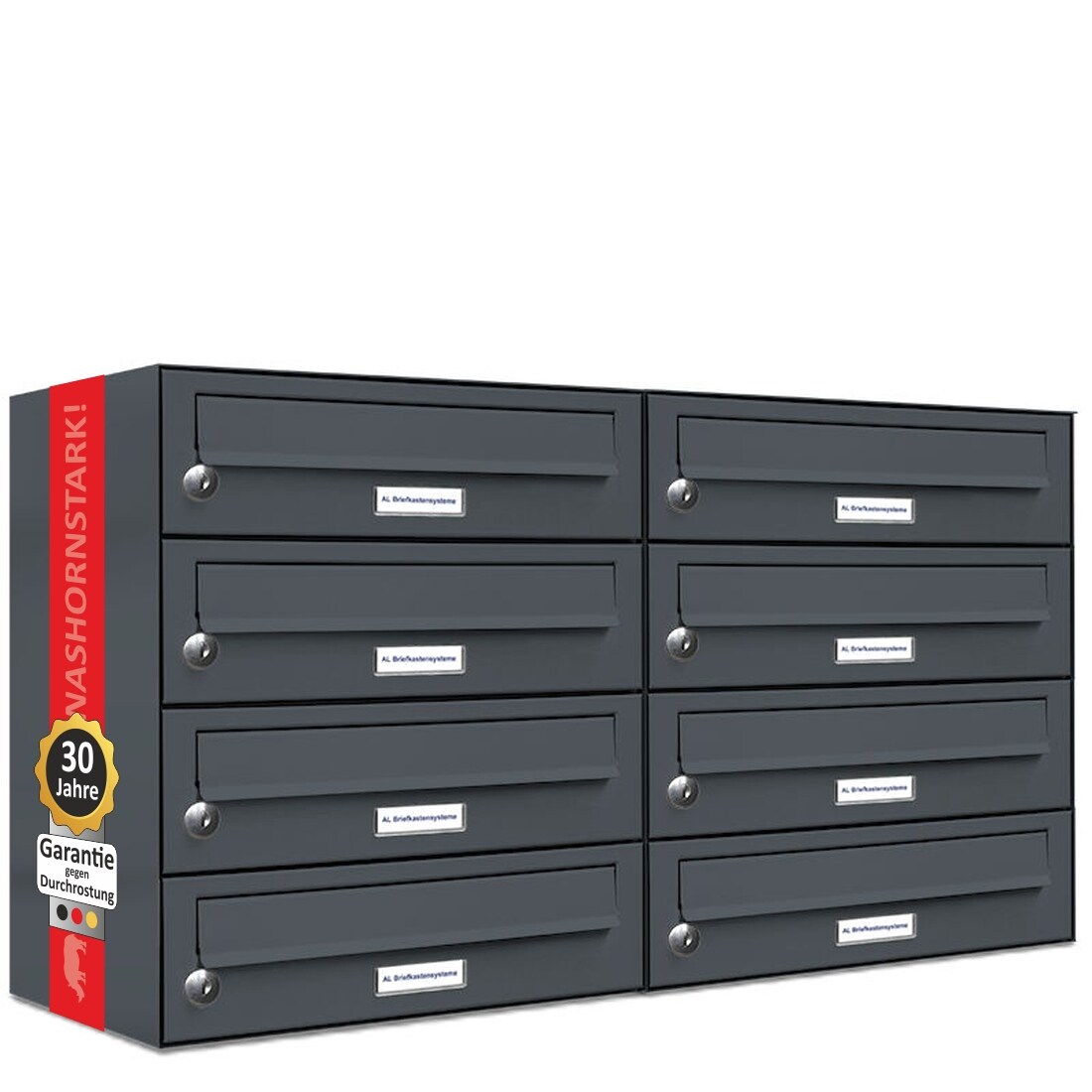 AL Briefkastensysteme 8 Fächer Premium Wand Briefkasten Anlage in RAL 7016 Anthrazit Grau, Post A4, robust, wetterfest, Artikelnummer: 132P8EA2P7016
