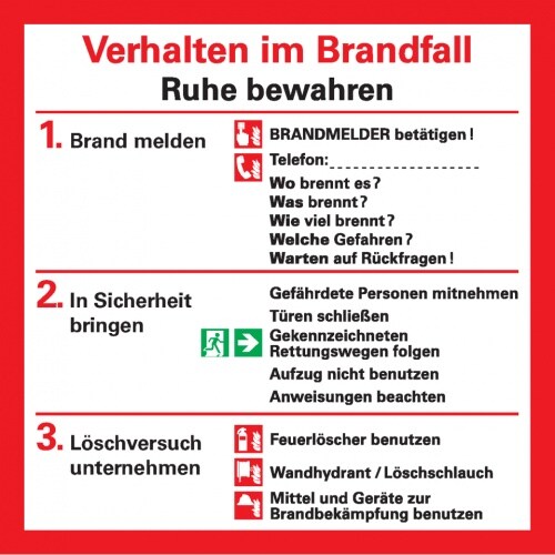 Notfallplan Verhalten im Brandfall, KRO, Kunststoff, 200x200mm, ASR A1.3, DIN EN ISO 7010