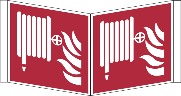 Brandschutzzeichen, Winkelschild Löschschlauch F002 - ASR A1.3 (DIN EN ISO 7010) - 200x200x0.6 mm Aluminium glatt, nachleuchtend