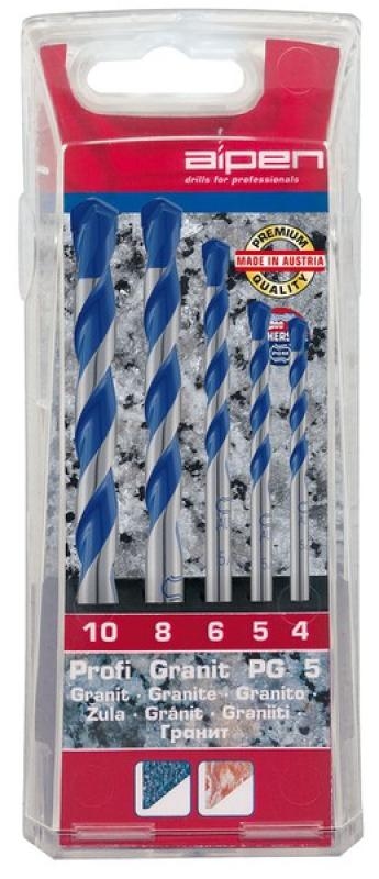 Alpen HM Steinbohrersatz 4 - 10mm mit Rundschaft , für Granit und Marmor
