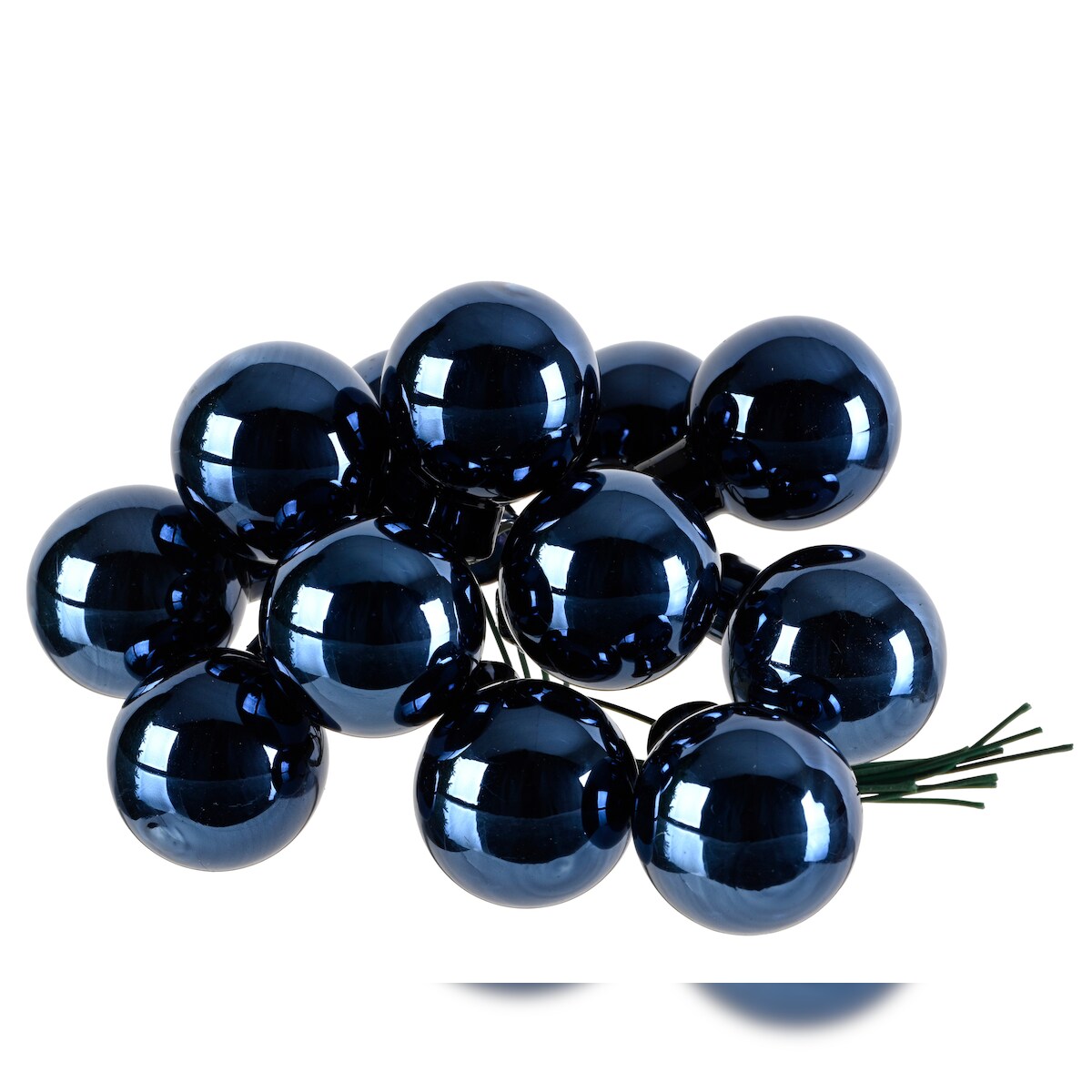 12 Weihnachtskugeln am Draht Glas 2cm mini Spiegelbeeren zum Basteln dunkelblau