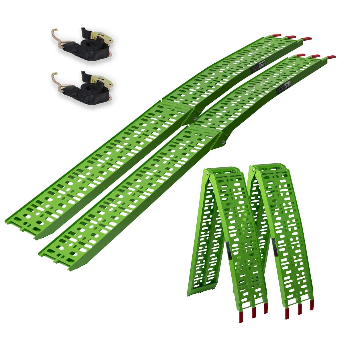 Baumarktplus TRUTZHOLM 2 x Auffahrrampe klappbar 228 cm Traglast 680 kg Alu grün gelocht Rampen Motorradrampen