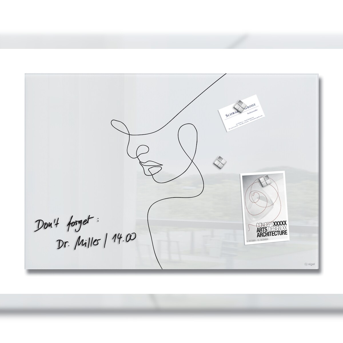 Sigel GL395 Glas-Magnettafel Artverum - Design Line Art - 60 x 40 cm - weiß, schwarz - Sicherheitsglas