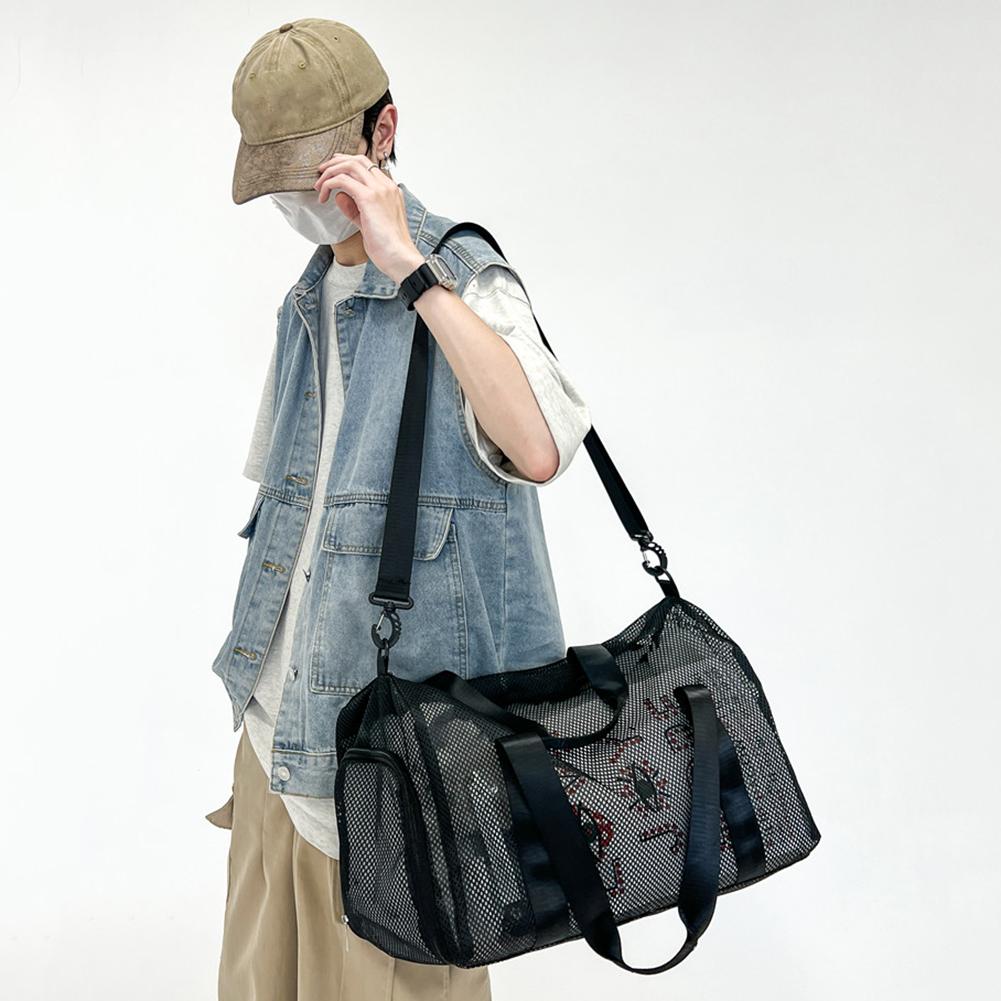 Mesh Reis Duffeltas Carry On Sporttas met Schoenvak Fitness Messenger Bag Droog Nat Scheiding voor Zwemmen Strand Kamp zwart