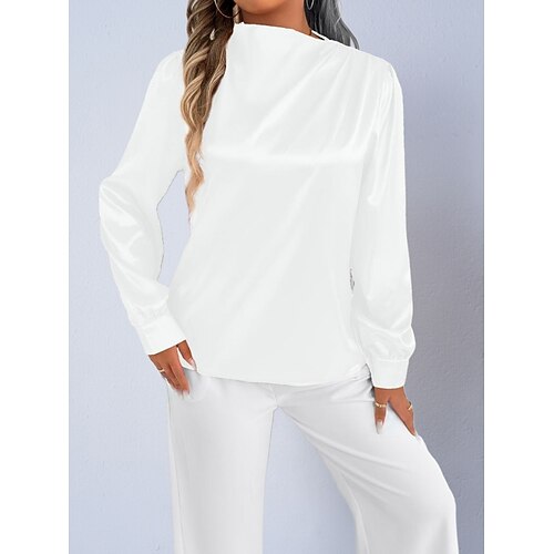 Per donna Camicia Camicia in raso Camicia casual Arricciato Semplice Elegante Essenziale Classico Manica Lunga Collo Alto Top Regolari Quotidiano Ferie Uscire Nero Bianco Vino Rosso Arancione