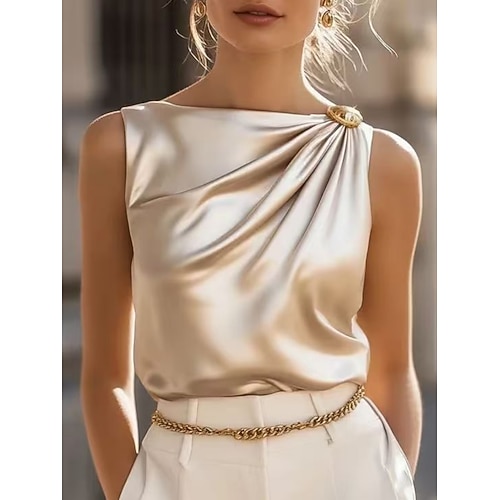 Per donna Canotta in raso Camicia in raso Camicia elegante Blusa Arricciato Semplice Elegante Vintage Moda Senza Maniche Girocollo Top Regolari Quotidiano Lavoro Feste Oro Estate Primavera